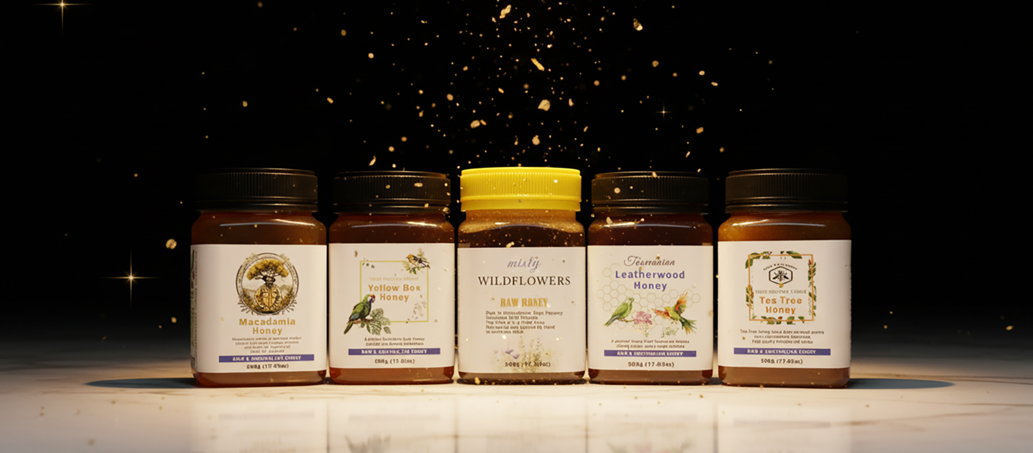 호주 동부해안 지역에서 채집되는 다채로운 천연생꿀(Raw Honey)부터, 최남단 태즈매니아 남부의 원시림에서 채집한 희귀하고 향기로운 래더우드 허니, 스모키하고 약간 쌉싸름한 맛이 매력적인 티트리 허니, 모든 음식에 어울리는 테이블 허니 옐로우 박스, 호주의 대표 견과류에서 얻는 고소한 향의 단맛 마카다미아 허니까지 호주 허니의 다양한 천연 생꿀을 소개합니다.