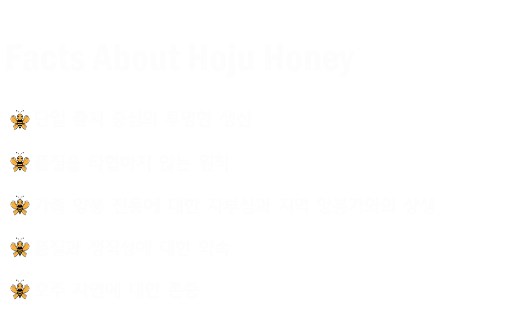 저희는 현장에서 직접 꿀을 생산하는 양봉가로서, 자연이 만들어낸 그대로의 가치가 소비자에게 온전히 전달되기를 바랍니다.