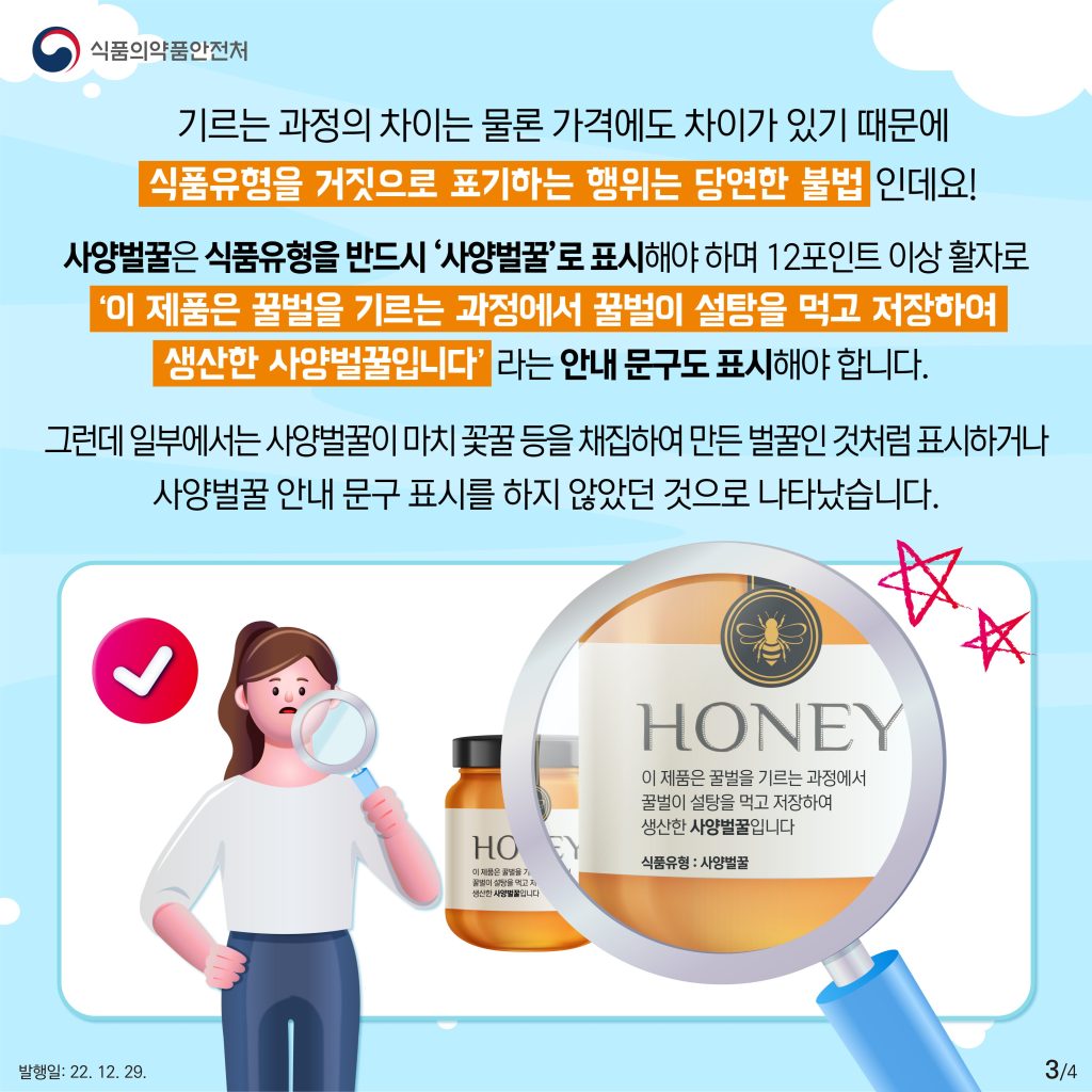 벌꿀 이렇게 달라요! – 식약처 공고
