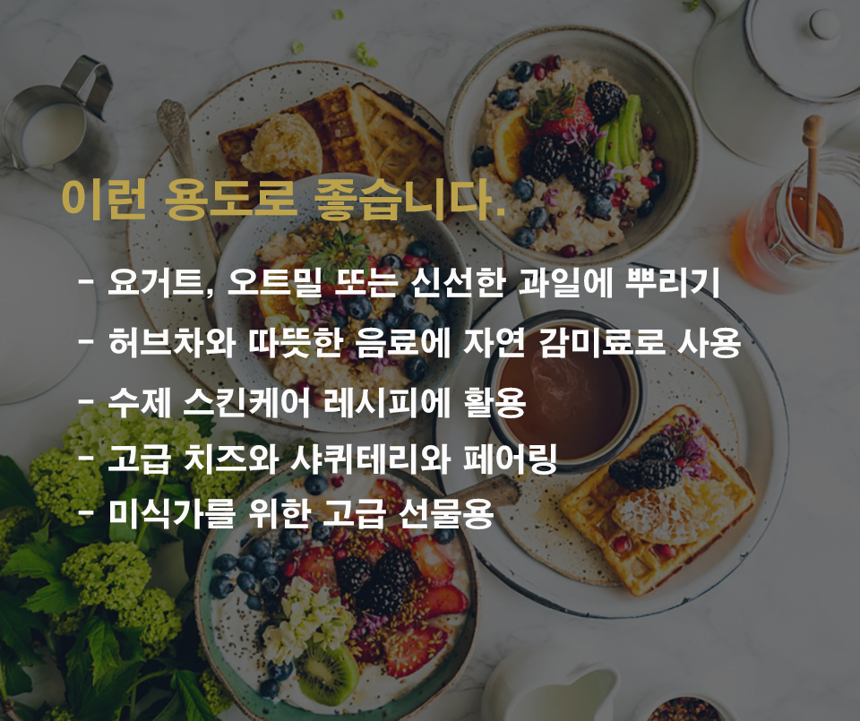 | 알레르기 정보 | 꿀, 꽃가루 알레르기 체질 주의 |