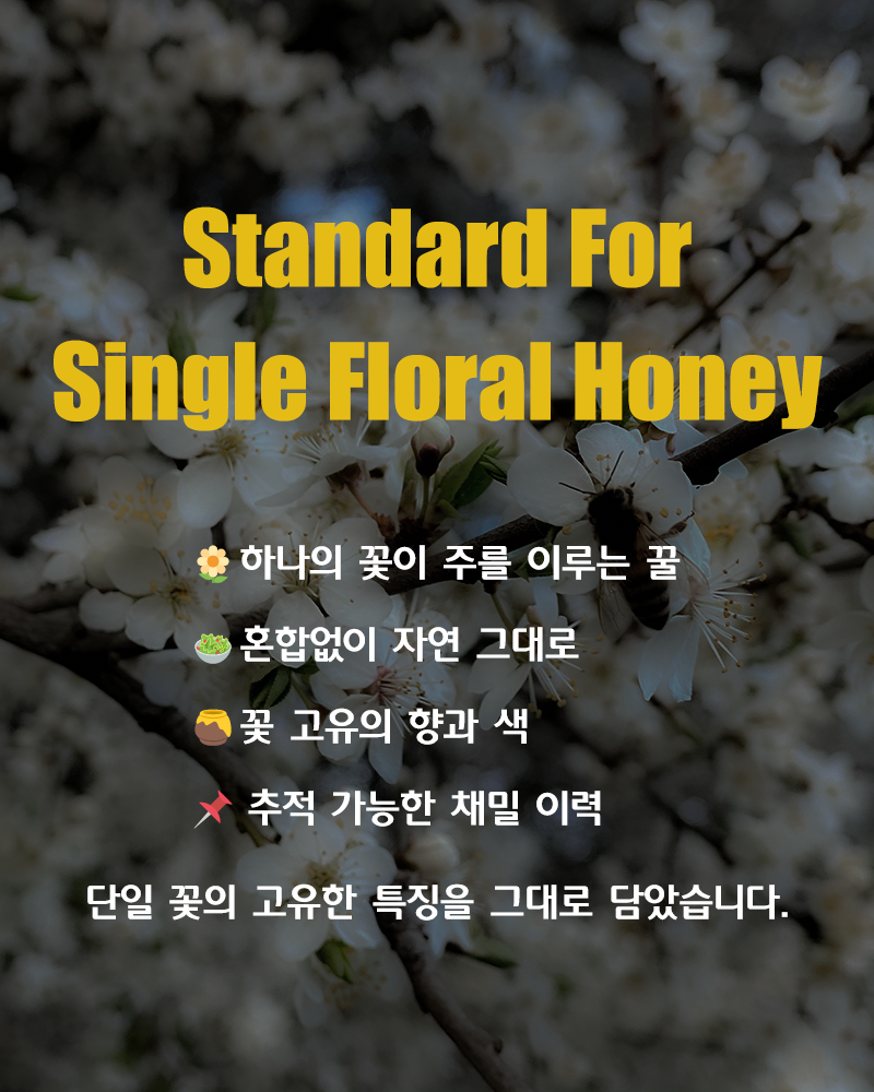 국제적으로 인정받는 Single Floral Honey 는 전체 꿀의 최소 45% 이상이 특정 꽃에서