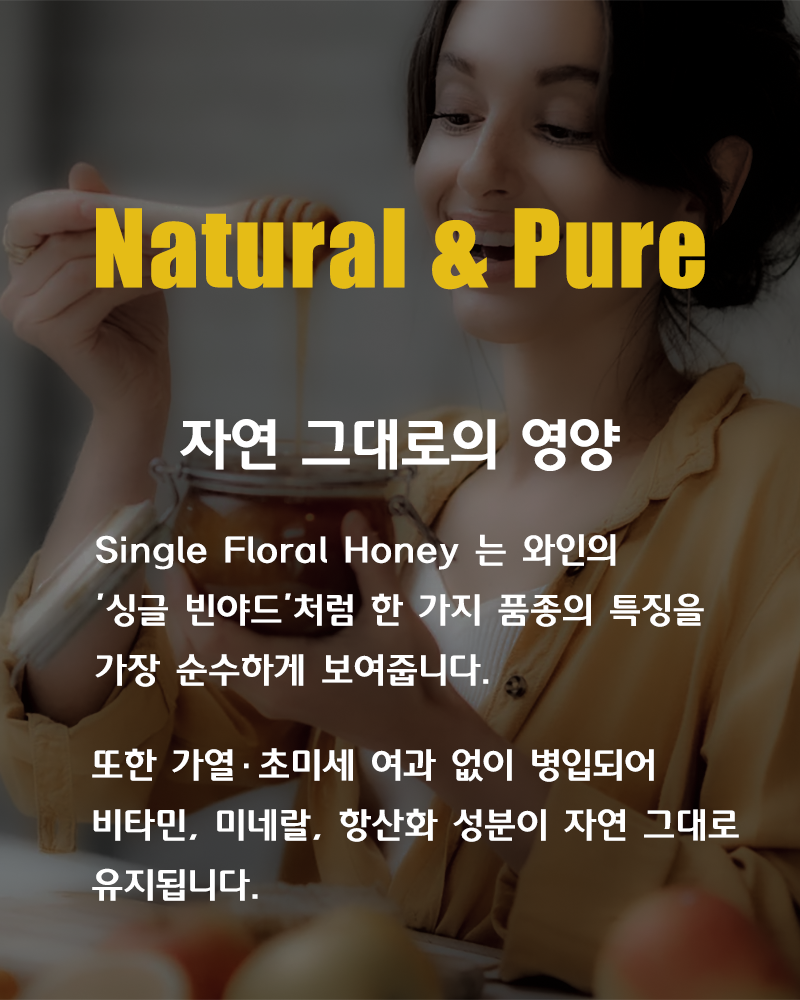 Single Floral Honey 는 단일 꽃 종류에서 채취된 고품질 벌꿀로,